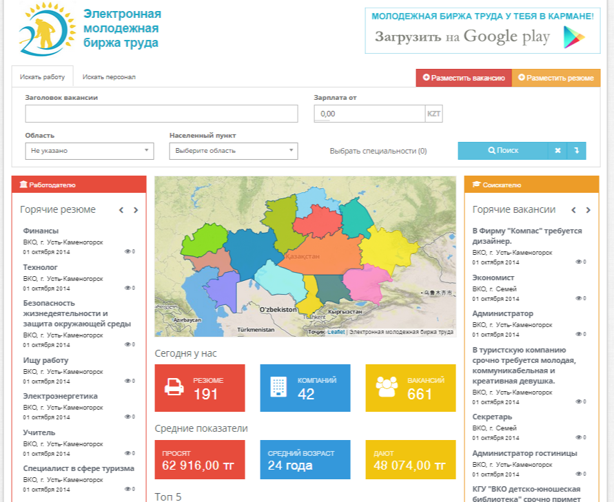 Электронная молодежная биржа труда «Труд.каз» создана как место встречи работодателей и молодых специалистов. Регистрируйтесь, за несколько простейших шагов добавляйте свое резюме или размещайте вакансию. К вашим услугам - широкая база резюме и вакансий всей области.